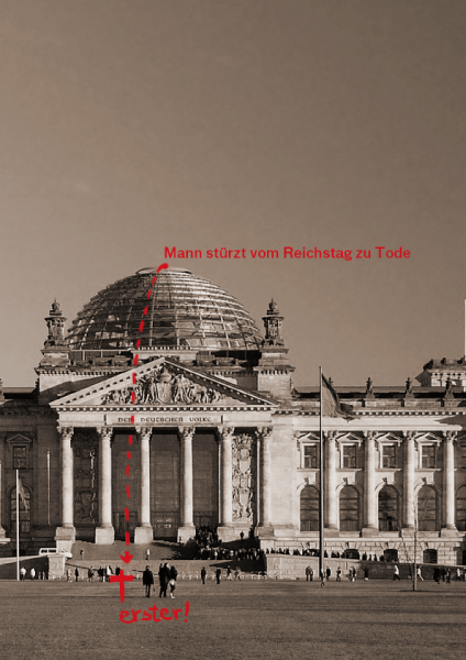 Einen Unfall schließt die Polizei aus. Die Reichstagskuppel, täglich Ziel von Tausenden Besuchern, wurde vorübergehend gesperrt. Es sei das erste Mal gewesen, dass sich ein Mensch von der Dachterrasse gestürzt habe, sagte eine Sprecherin des Bundestags.Nach Angaben der „Berliner Morgenpost“
